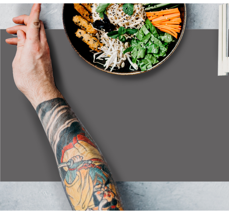 Referans: M4025Taze sebzeler, erişte ve marine edilmiş tavukla dolu bir yemek kasesinin görsel olarak çekici bir düzenlemesi. Dövmeli kol, bu gastronomik sunumun genel estetiğini artırarak sanatsal bir dokunuş katıyor.