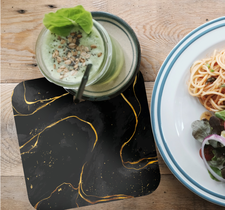Siyah ve altın mermer modern içecek altlığı