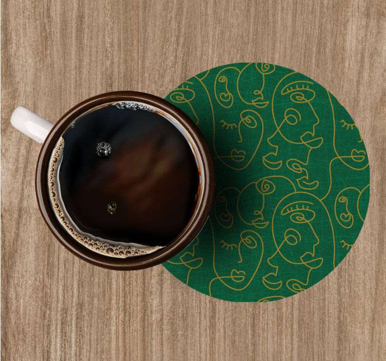 Yeşil arka planda soyut çizilmiş kadın sanatı ile yuvarlak vinil içecek altlığı