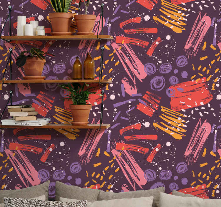 Etkileyici fırça darbeleri soyut duvar kağıdı, standart duvar kağıdı uygulama yöntemleriyle kolayca uygulanabilir.