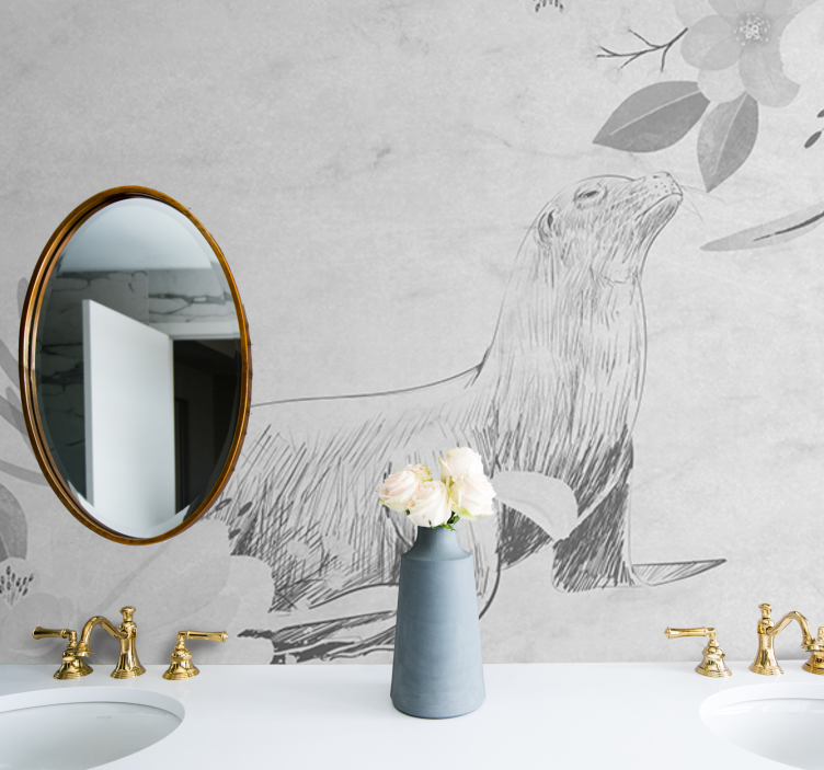 Banyo Duvar Resmi Çiçekler Arasında MühürBanyo duvar reslim Çiçekler arasında mühür, doğanın zarafetini ve güzelliğini evinize taşıyan muhteşem bir tasarıma sahiptir. Bu grafiksel tasarımda, zarif çiçekler, sevimli hayvan figürleri ve doğal unsurlar bir araya gelerek, göz alıcı bir kompozisyon oluşturur. Gri tonlamalı ve kroki tarzındaki detaylarıyla bu eser, banyonuzda eşsiz bir atmosfer yaratır!