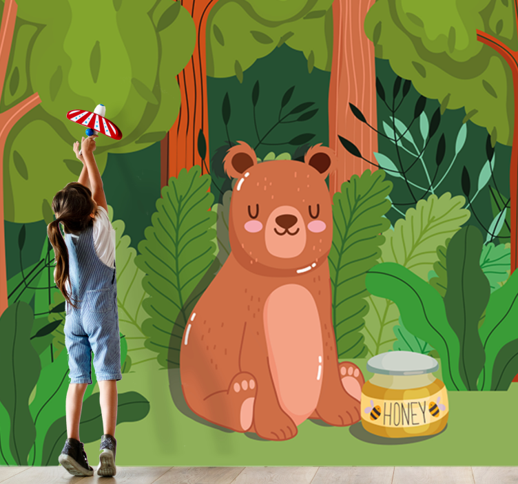 Çocuk odası duvar reslim sevimli ayı tablosuDoğanın güzelliklerini ve sevimli hayvanların sevimliliğini çocuk odalarına taşımak için tasarlanmış olan Çocuk odası duvar reslim sevimli ayı tablosu, orman temalı, bal dolu, renkli illüstrasyonlarıyla dikkat çekiyor. Bu muhteşem tasarım, çocukların hayal gücünü beslerken, odalarına sıcak ve samimi bir atmosfer katıyor.