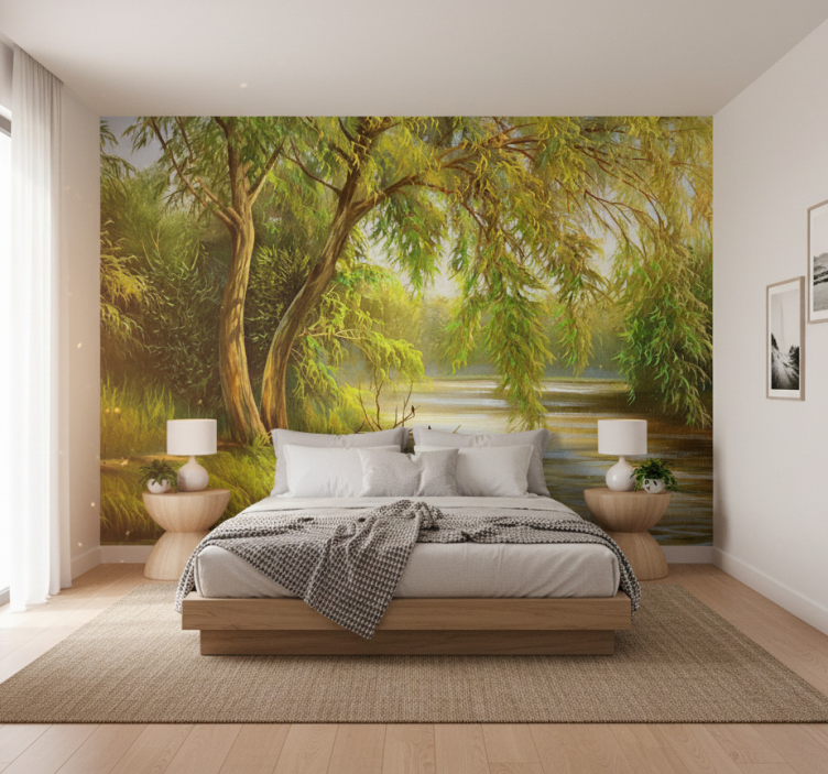 Orman duvar resmi - sakin nehir söğüt orman duvar resim kullanmanın birçok avantajı var. Bu sanat eseri, evinizin atmosferini anında değiştirebilir ve mekânınıza doğal bir dokunuş ekleyebilir. İç mekan dekorasyonunda doğal unsurlara yer vermek, sakinleştirici bir ortam yaratır. Bu duvar resmi, misafirlerinizi etkilemenin yanı sıra, size de huzur verecek bir arka plan sunar. Herhangi bir odayı daha davetkâr ve sıcak hale getirir.