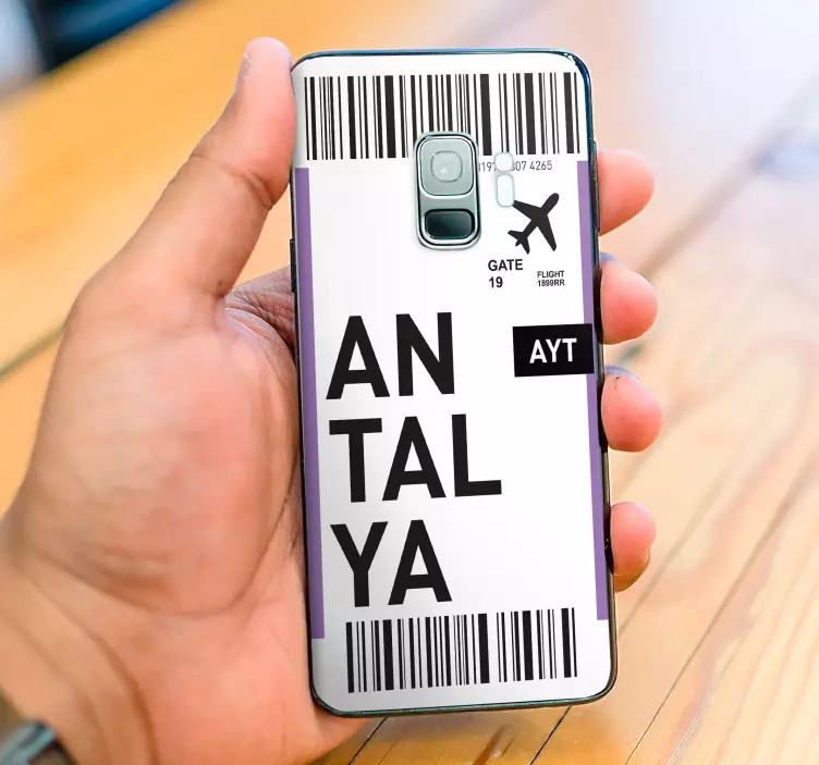 Antalya'ya uçak bileti samsung çıkartması, uçak bileti çıkartma koleksiyonumuzdan güzel bir tasarımdır. Kaliteli vinil ile basılmıştır ve uygulandığında kırışmaz veya kabarcık yapmaz. Ayrıca istediğiniz zaman kolayca çıkarabilirsiniz.