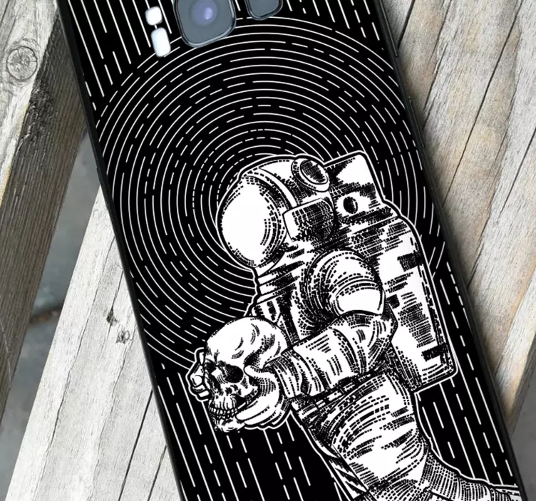 Referans: A48462Bir astronotu bir kafatası tutarken gösteren çarpıcı bir görüntü, etrafında dönen çizgilerle büyüleyici bir etki yaratıyor. Tasarım, uzayda gizem ve keşif duygusu uyandırıyor ve bilim kurgu unsurlarını keskin monokrom kontrastlarla harmanlıyor.