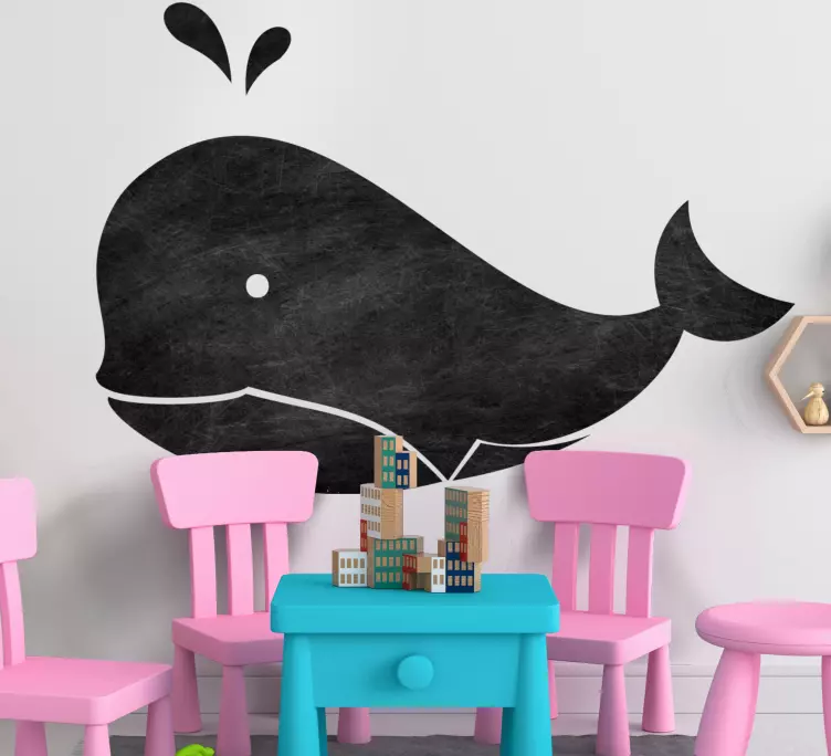 Hayvan Çıkartması - balina silueti tasarımıHayvan çıkartması - balina silueti tasarımı, özellikle çocuk dostu ortamlarda eğlenceli ve şakacı bir atmosfer yaratmak için mükemmel bir seçimdir. Karatahta görünümündeki balina silueti, deniz temalı dekorasyonunuza canlılık katarken, evinize veya ofisinize özel bir dokunuş sağlar. Bu tasarım, deniz ve hayvan sevgisini bir araya getirerek, mekanlarınıza neşeli bir hava getirir!