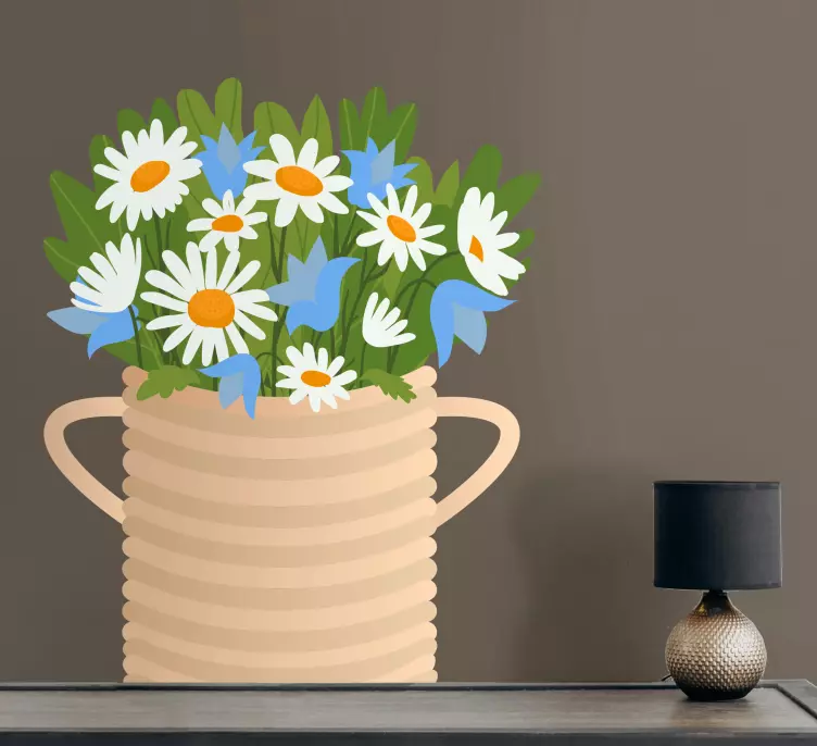 Hayvan Çıkartması - Çiçek düzenleme vazosuHayvan Çıkartması - Çiçek düzenleme vazosu, doğanın güzelliklerini evinize taşıyan eşsiz bir tasarıma sahiptir. İçerisinde mavi ve yeşil yaprakların zarif bir uyumla yer aldığı bu vazo, canlı papatyalarla süslenmiştir. Doğanın tüm renklerini bir araya getiren bu ürün, hem göz alıcı bir dekorasyon unsuru olarak hem de sevdiklerinize hediye etmek için mükemmel bir seçenek sunuyor!