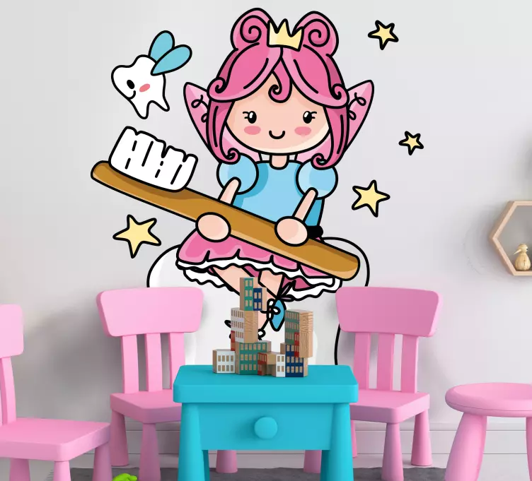 Referans: A48806Bir diş perisi karakterinin şirin bir tasviri, diş fırçası ve neşeli bir ifade ile tamamlanmış. Bu tasarım, herhangi bir çocuk odasına sihirli bir dokunuş ekleyerek eğlenceli diş alışkanlıklarını teşvik ederken, renkli ve neşeli unsurlarıyla hayal gücünü de yakalıyor.