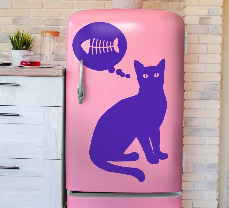 Referans: A49020Bu eğlenceli tasarım, bir kediyi düşünceli bir pozda, bir balığı hayal ederken gösteriyor. Tasarım, mutfakınıza neşeli bir çekicilik katıyor ve evcil hayvan severlerle uyumlu bir atmosfer yaratıyor. Sevilen bir evcil hayvanı vurgulayan benzersiz bir dokunuşla alanınızı kişiselleştirmek için idealdir.