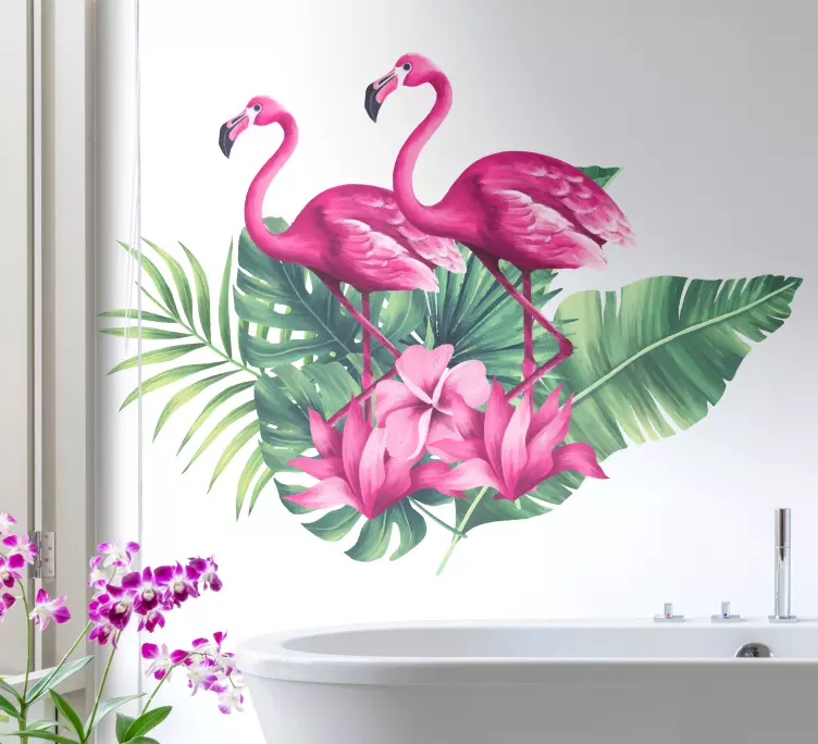 Hayvan Çıkartması flamingolar ve yeşillikler