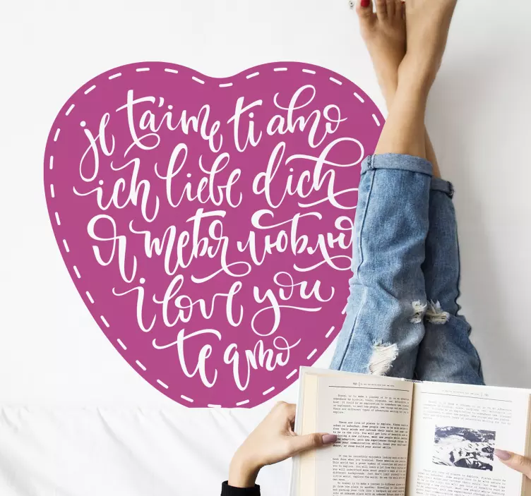 Hayvan Çıkartması - İçten sevgi İfadeleriHayvan Çıkartması - İçten sevgi İfadeleri, içindeki kalp motifleri ve kaligrafi ile öne çıkan, aşk dolu mesajlar içeren bir tasarımdır. Farklı dillerdeki sevgi ifadeleri, duygusal ve romantik bir atmosfer yaratmak için mükemmel bir dekoratif unsurdur. Eviniz veya ofisiniz için ideal bir seçim olan bu çıkartmalar, mekanınıza sıcaklık katarken, aynı zamanda estetik bir görünüm sunar.