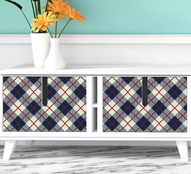 Referans: A49298Bu ürün, lacivert, krem ve kırmızı tonlarını çarpıcı bir geometrik düzenle birleştiren sofistike bir ekose desenine sahiptir. Tasarımı, ev dekorundaki çeşitli yüzeyleri zenginleştirmek için mükemmel bir şekilde zarafet ve şık sadeliği harmanlamaktadır.