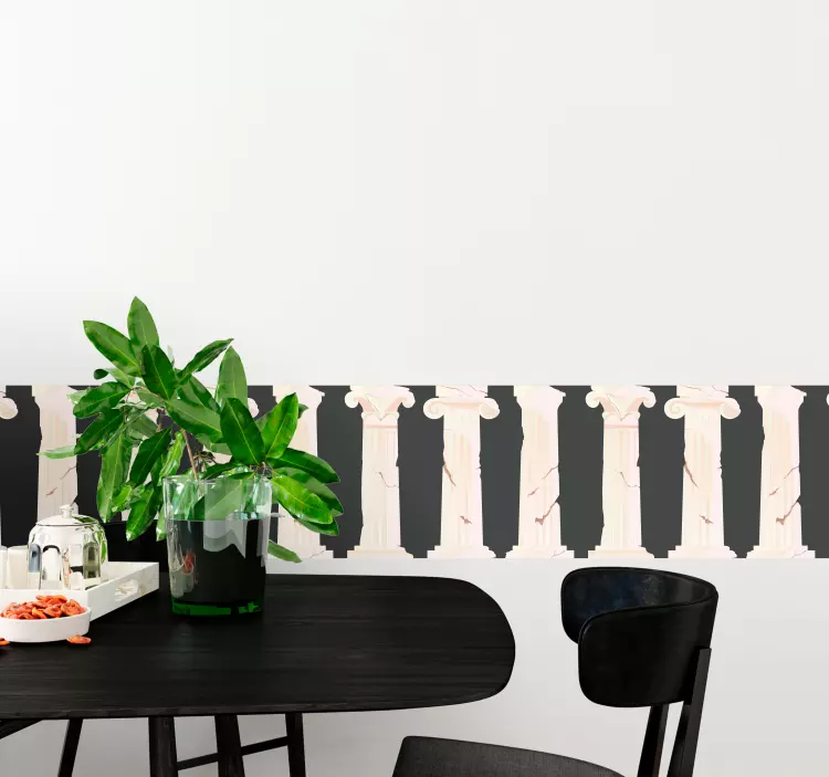Hayvan Çıkartması - klasik sütun tasarımıHayvan Çıkartması - klasik sütun tasarımı, antik Yunan estetiğini modern yaşam alanlarına taşıyan zarif bir dekoratif unsurdur. Bu tasarım, geleneksel sütunların zarif hatlarını, mermer dokusunu ve şık bir siyah arka plan ile birleştirerek göz alıcı bir hava oluşturur. İç mekanlarda kullanıldığında, mekânınıza zarafet ve tarihsel bir derinlik katarken, aynı zamanda sanatsal bir dokunuş sunar.