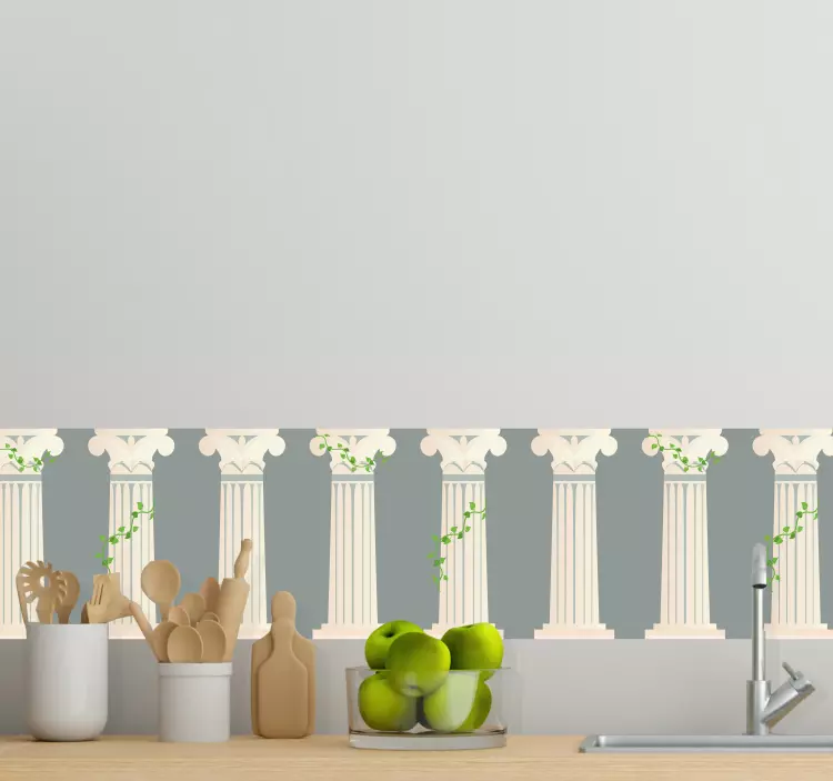 Hayvan Çıkartması Klasik Sütun VurgusuHayvan Çıkartması klasik sütun vurgusu, Yunan tarzı estetiği ve zarif tasarımıyla iç mekanınıza sofistike bir dokunuş katıyor. Sütunlar, sınır detayları ve asma motifleriyle zenginleştirilmiş bu ürün, mutfak dizaynınızı modern ve şık bir hale getirirken, iç mekan stilinize de mükemmel uyum sağlıyor.