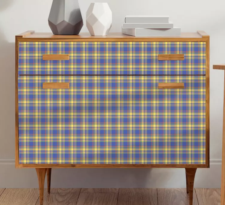 Referans: A49271Mavi ve sarı tonlarının karışımını içeren şık bir ekose desen. Bu tasarım, mobilyalara çağdaş bir dokunuş katarak klasik ama modern bir estetikle görsel çekiciliğini artırır.