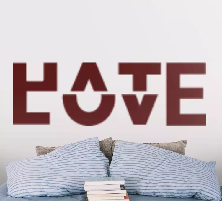 Referans: A48188Tasarım, 'HATE' ve 'LOVE' kelimeleri arasında çarpıcı bir zıtlık sunuyor. Eğlenceli tipografi kullanımı, modern iç mekanlar için mükemmel, düşündürücü bir mesaj iletiyor. Monokrom renk paleti, çeşitli dekor stilleriyle uyum sağlamak için özelleştirme imkanı sunarak çok yönlülük katıyor.
