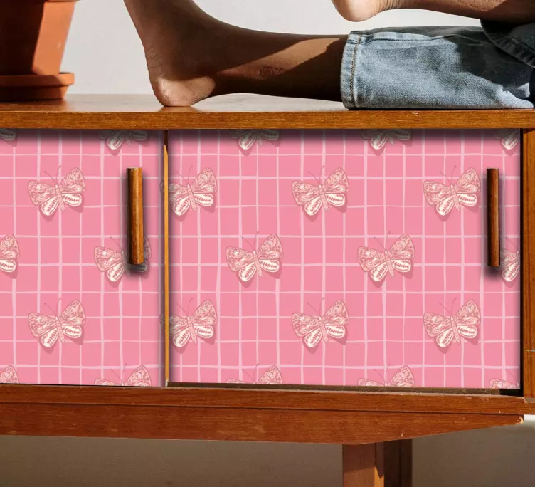 Hayvan Çıkartması Pembe Kelebek DeseniHayvan Çıkartması pembe kelebek deseni, zarif bir grafik tasarıma sahip olup, özellikle kelebekler ve kafes motifleriyle bezeli, damalı bir model sunuyor. Bu dekoratif tasarım, pembe renk tonlarıyla odanıza neşe katarken, mobilyalarınızı da şık bir şekilde tamamlayacaktır. Kelebeklerin zarafeti, mekanlarınıza can katacak ve sıcak bir atmosfer oluşturacaktır!