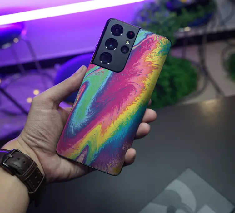 Referans: A49208Pembe, mavi, yeşil ve sarıdan oluşan döngüsel renklerle dolu canlı bir tasarım, büyüleyici bir akışkan desen oluşturuyor. Bu dikkat çekici motif, kişisel eşyaları zenginleştirmek için mükemmel ve her cihaza modern bir dokunuş katıyor.