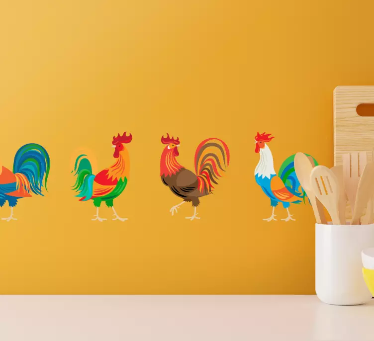 Referans: A49028Farklı tasarım ve stil özellikleri taşıyan rengarenk horozların yer aldığı canlı bir sergi. Bu koleksiyon, mekâna eğlenceli ve canlı bir dokunuş katıyor, mutfaklar veya yemek alanları için mükemmel bir seçim.