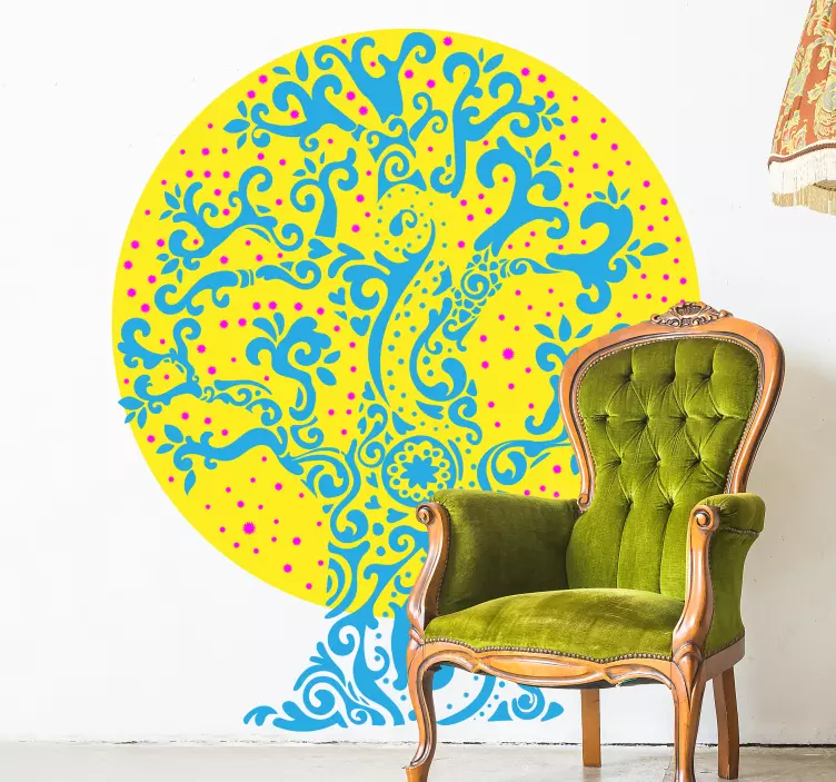 Hayvan Çıkartması Renkli Süsleme AğacıHayvan Çıkartması renkli süsleme ağacı, doğanın güzelliklerini evinize taşıyan muhteşem bir tasarıma sahip. Dairesel formlarla çevrelenen ağaç figürü, organik şekiller ve renkli noktalarla bezeli yapısı sayesinde yaşam dolu bir atmosfer yaratıyor. Bu sanatsal tasarım, yaşam alanlarınıza neşe katmak için mükemmel bir seçimdir!