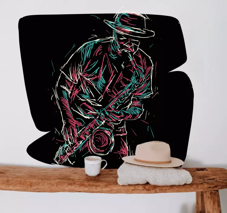 Hayvan çıkartması saksafoncu ÇalanHayvan çıkartması saksafoncu Çalan, müzik tutkusunu ve cazın enerjisini yansıtan eşsiz bir tasarıma sahip. Bu harika grafik, saksafon çalan bir hayvan ile müzikal bir atmosfer yaratırken, şapka takmış cazcı figürü ile hem eğlenceli hem de ilham verici bir görüntü sunuyor. Resim çizme yeteneğini ve müziğin büyüsünü bir araya getirerek, evinizin dekorasyonuna renk katmanın yanı sıra görsel olarak da keyifli bir deneyim sunuyor!