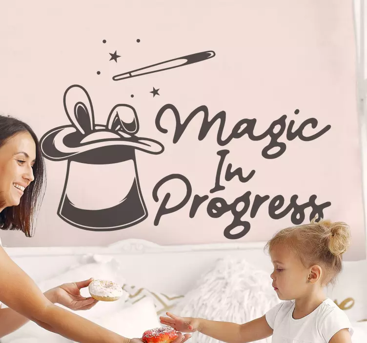 Referans: A46987Yıldızlar ve sihirli bir asa gibi eğlenceli unsurlarla süslenmiş bir sihirli şapkanın yer aldığı büyüleyici bir sahne, yaratıcılığı teşvik etmek için idealdir. 'Magic In Progress' ifadesi, çocuk hayal gücünün neşesini yakalayarak sahneye neşeli bir dokunuş ekler. Neşeli bir alan için mükemmel.