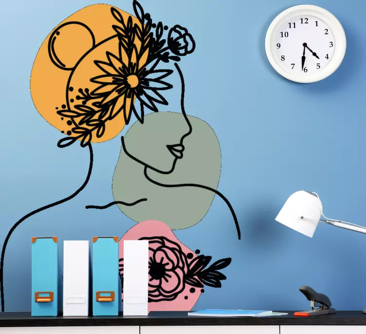 Hayvan Çıkartması Şık kadın siluetiHayvan Çıkartması Şık kadın silueti, zarif bir kadın silueti ile birlikte çiçek motiflerinin minimalist bir tasarımını sunuyor. Bu grafik tasarım, doğrusal hatlarıyla dikkat çekerken, özünü yansıtan bir estetik anlayışa sahiptir. Herhangi bir mekâna şıklık katmak için ideal bir seçim olan bu tasarım, vesika gibi unsurlarla zenginleştirilmiştir.