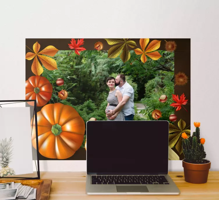 Hayvan çıkartması sonbahar sebze düzeniSonbaharın sıcak renkleri ve doğal güzellikleri, hayvan çıkartması sonbahar sebze düzeni ile evinize geliyor! Bu eşsiz tasarım, kabaklar, yapraklar ve balkabaklarıyla dolu bir sonbahar manzarası sunarken, cadılar bayramı ruhunu da yansıtır. Çerçeve içinde yer alan bu renkli fotoğraf, doğanın mevsimsel güzelliklerini evinize taşıyarak sıcak bir atmosfer yaratır. Hasat dönemiyle özdeşleşen mısırlar ve yapraklar, geleneksel sonbahar temalarını modern bir dokunuşla bir araya getiriyor.