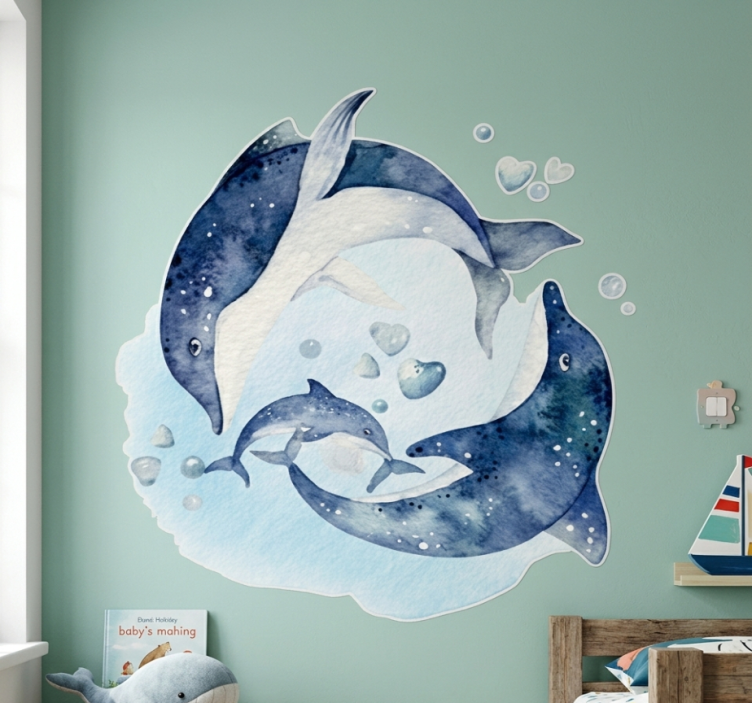 Hayvan çıkartması suluboya yunus duvar resmi