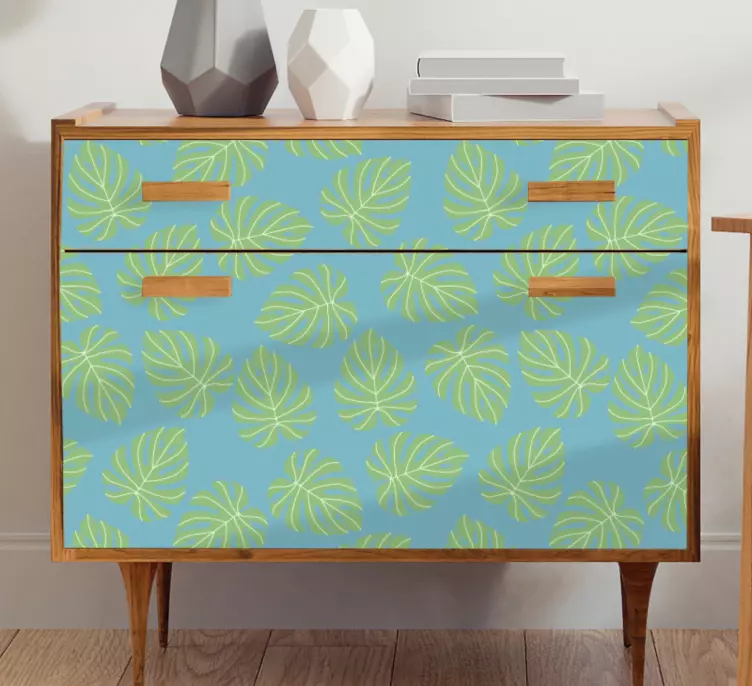 Hayvan Çıkartması - yaprak deseni kaplamaDoğanın büyüleyici güzelliklerini evinize taşımak için tasarlanmış Hayvan Çıkartması - yaprak deseni kaplama, tropikal yaprak desenleriyle zenginleştirilmiş bir grafik estetiği sunuyor. Mavi ve yeşil tonlarındaki bu dekoratif model, mobilyalarınıza ve duvarlarınıza ferah bir hava katarken, aynı zamanda doğanın huzurunu da evinize getiriyor. Bu eşsiz tasarım, mekanlarınızı canlı ve enerjik hale getirirken, modern ve şık bir atmosfer yaratmanıza yardımcı oluyor.