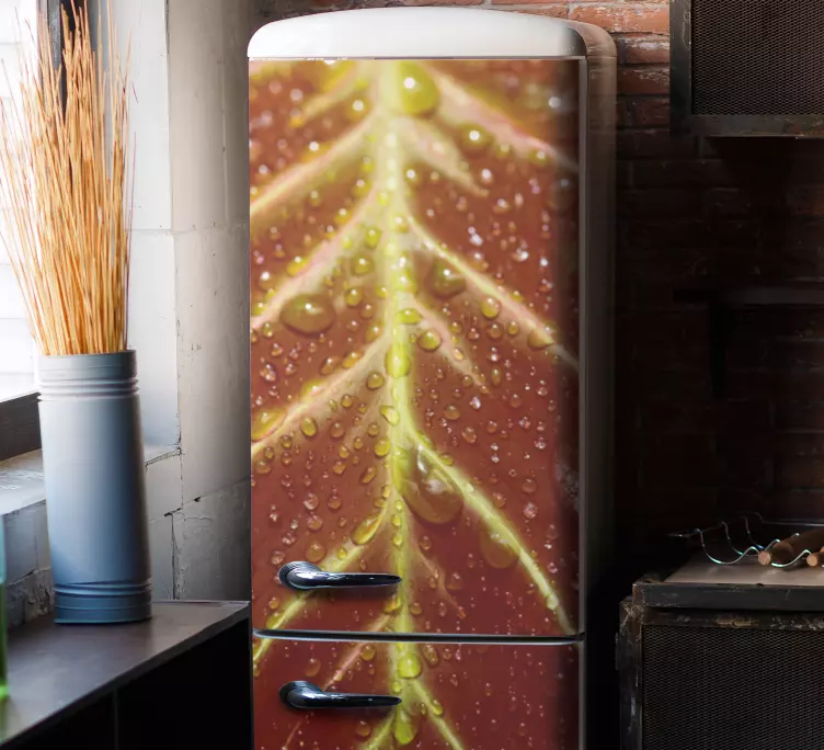 Referans: A48139Canlı bir tasarım, bir yaprak üzerindeki su damlalarını öne çıkararak tazelik ve canlılık hissi veriyor. Karmaşık damar desenleri ve parlayan yüzey, etkileyici bir görsel etki yaratıyor ve bu tasarımı herhangi bir mutfak veya ev ortamına çarpıcı bir katkı sağlıyor.