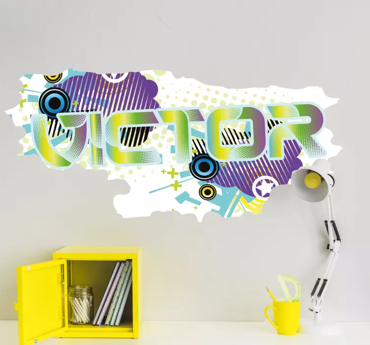 Referans: A34645Isim özel çıkartması ile renkli fütüristik grafiti