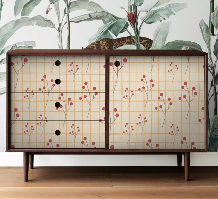 Transform the look of your furniture with our raspberry furniture decals. These decals feature a beautiful plaid pattern and raspberries on a beige background. They can be easily applied to any furniture area, including cabinets, drawers, tables, and work desks. The decals are designed to be wrinkle-free and bubble-free, ensuring a smooth and seamless application. Plus, they can be easily removed without leaving any residue.