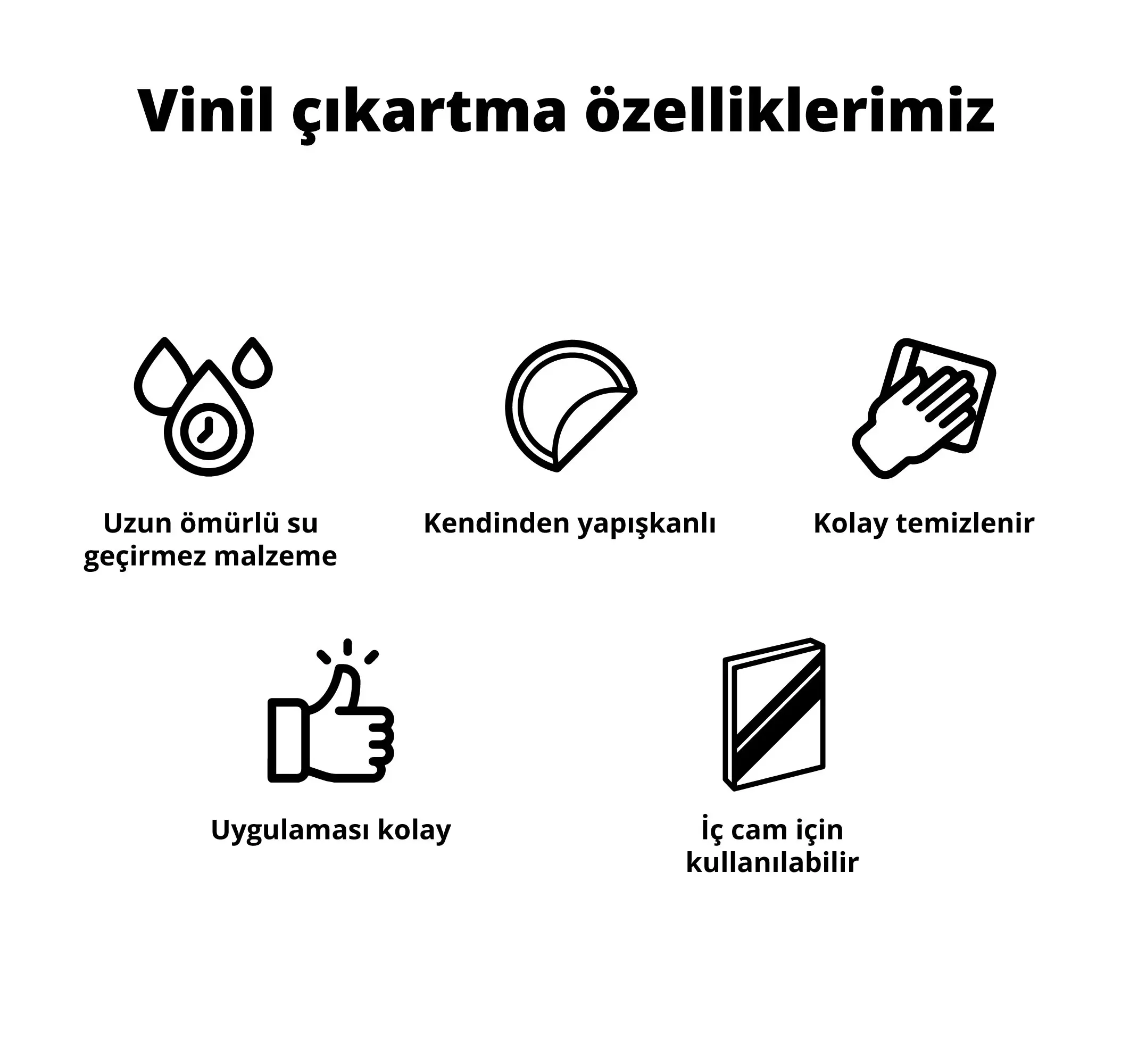 **Vinillerin tüp içinde ambalajlanmaları için rulo haline getirilmeleri, esasen uygulamasını kolaylaştırma işlevini gören aktarıcı kağıtta bazı kırışıklıklara yol açabilir. Paketi teslim aldığınızda vinilleri açmanızı ve eğer aktarıcı mevcutsa uygulamadan önce spatula veya benzer bir obje kullanarak baskı uygulamanızı öneriyoruz. Vinil esnek bir materyaldir, bu nedenle doğru uygulanması durumunda kağıdı etkileyen herhangi bir kırışıklık vinili hiçbir şekilde etkilemez.
