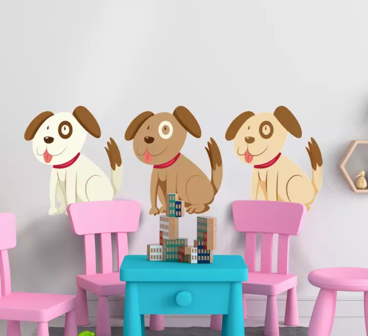 Çocuğun yatak odasını, oyun odasını veya bebeğin kreş alanını renklendirmek için mükemmel bir seçenek olan renkli sevimli köpek kedi çıkartması, çizgi film köpek illüstrasyonunun koleksiyon tasarımıyla sunulmaktadır. Farklı renk seçenekleriyle çocuğun alanında harika bir dekorasyon unsuru olacaktır.