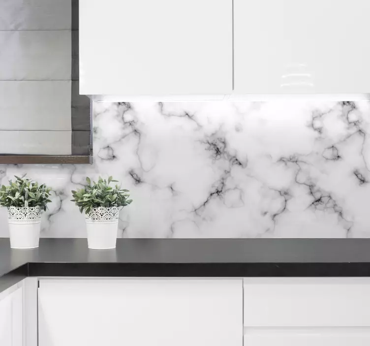 Prepare to be amazed at how easy it is to transform the appearance of your kitchen with a simple decorative element! This wall sticker in white marble is both elegant and durable, ensuring long-lasting satisfaction. The pattern imitates white marble and can be easily personalized to your desired size. It is also easy to clean and remove if necessary during relocation. Add this beautiful white marble wall sticker to your cart now!