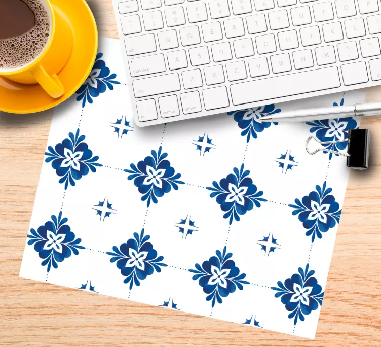 Desenler mouse pad Çiçek motifi deseniŞıklığı ve zarafeti bir arada sunan Desenler mouse pad Çiçek motifi deseni, klasik mavi ve beyaz tonlarında çiçek desenleri ile donatılmıştır. Bu grafik tasarım, geometrik bir düzen içerisinde yer alan fayans motifleri ile hem modern hem de dekoratif bir görünüm sunmaktadır. Çalışma alanınıza renk katmakla kalmaz, aynı zamanda dikkat çekici bir atmosfer yaratır!