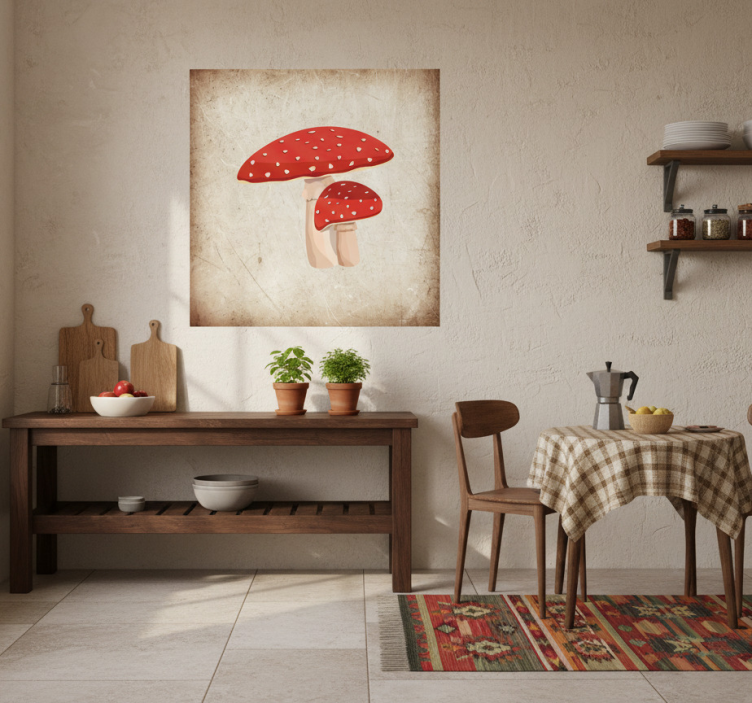 Mutfak afişi amanita mantar illüstrasyonu mutfak afiş kategorisinde yer alarak, mutfak dekorasyonunuza ilham veriyor. Renkli ve eğlenceli bir atmosfer yaratmak isteyenler için ideal bir seçim olan bu afiş, sadece görsel bir şölen sunmakla kalmaz, aynı zamanda misafirlerinizi de etkiler. Mutfak alanınızı kişiselleştirmenin en kolay yollarından biri olan bu afiş, yemeğinizi pişirirken bile size neşe katacak!