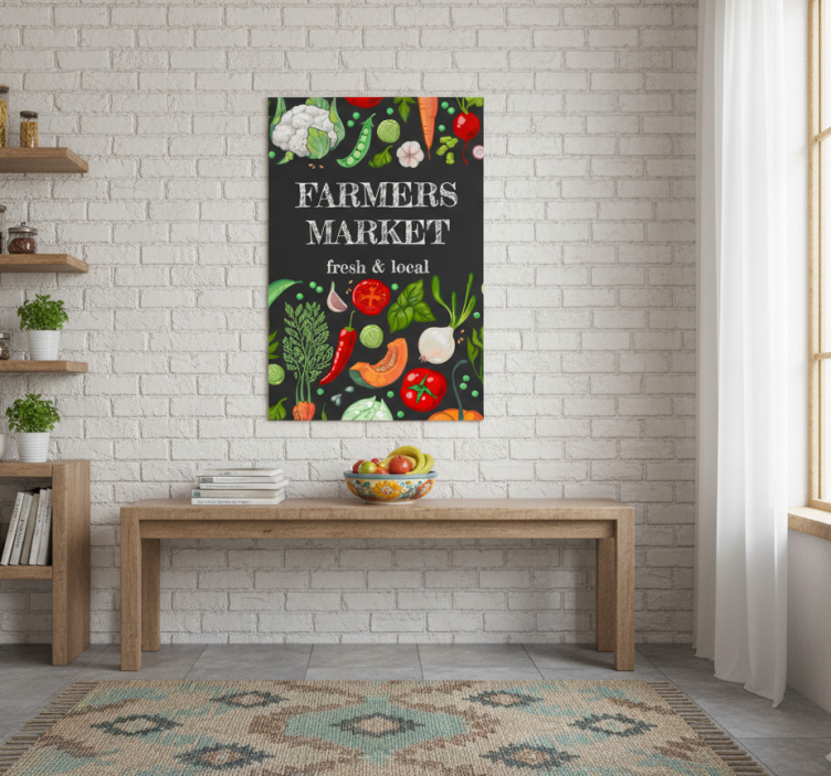 Referans: G637Modern ve şık bir görünüm sunan Mutfak afişi - Çiftçi pazarı, mutfak dekorasyonunuza taze bir nefes getirecek. Yüksek renk yoğunluğu ve yarı mat yüzeyi sayesinde, her açıdan dikkat çekici bir şekilde parlayan bu afiş, mutfaklarınıza çiftçi pazarı atmosferini taşıyor. 180g/m2 gramajı ile ideal bir poster kalitesine sahip olan bu tasarım, hem görsel estetik hem de dayanıklılık sunuyor.