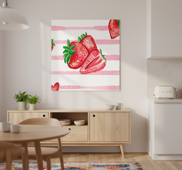 Mutfağınızda şıklığı ve canlılığı artırmak için mutfak afişi - çizgili arka planda dikişsiz çilekler mükemmel bir tercihtir. Bu afiş, mutfak duvarlarınızı renklendirirken, aynı zamanda sıcak bir atmosfer yaratır. Çileklerin neşesi ve çizgilerin modern görünümü, yemek yaparken ya da misafirlerinizi ağırlarken keyifli bir ortam sunar. Evinizin en önemli alanı olan mutfakta, estetik ve fonksiyonelliği bir arada bulmak için bu ürünü tercih edebilirsiniz.