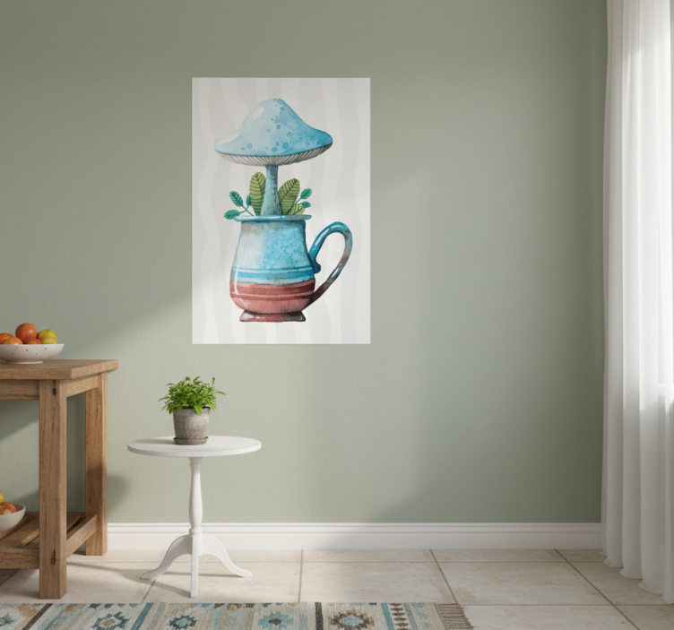 Mutfak afişi sevimli mantar tasarımı fincan içinde
