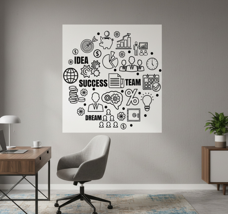 Ofis afişi İşletme İdeogramı, ofis dekorasyonunda önemli bir yere sahiptir. Mekâna kattığı renk ve stil ile çalışma alanlarını daha canlı hale getirir. Çalışanların motivasyonunu artırmak ve yaratıcılığı desteklemek için bu afiş, sadece bir dekoratif unsur değil, aynı zamanda bir ilham kaynağıdır. Ofisinizin ruhunu yansıtırken, profesyonel bir görünüm de sunar. İşletmenizin kimliğini güçlendirmek ve ortamda pozitif bir enerji yaratmak için idealdir!