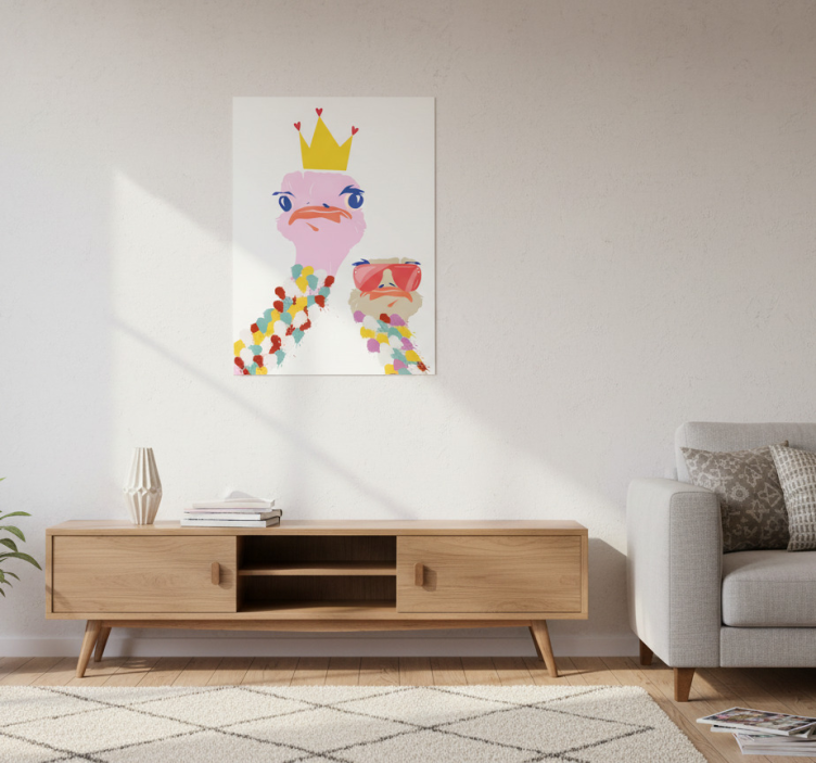 Oturma odası afişi renkli devekuşları sanatsal tarzı