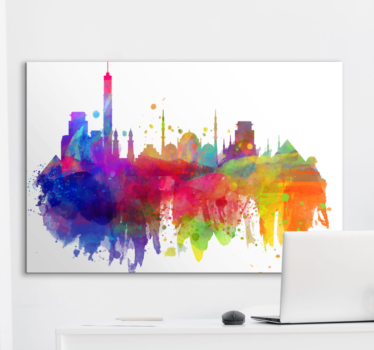 Şehirler ve Ülkeler kanvas tablo renkli Şehir silueti