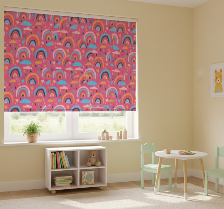 Çocuk odası stor perde - eğlenceli gökkuşağı desenleri