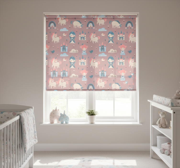 Çocuk odası stor perde pastel tek boynuzlu at ve prenses