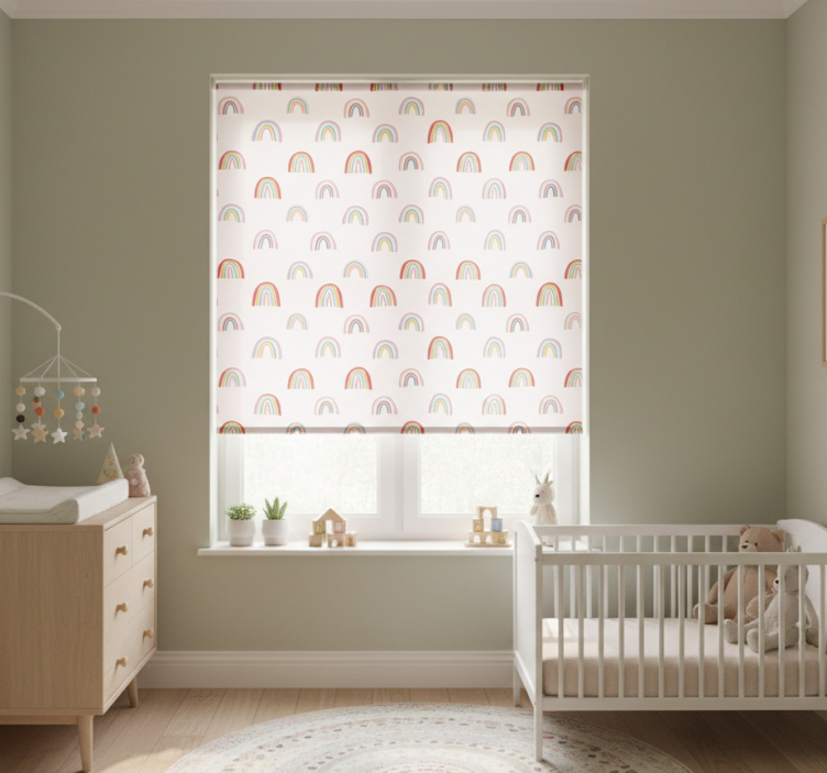Çocuk odası stor perde rengarenk gökkuşağı desenleri