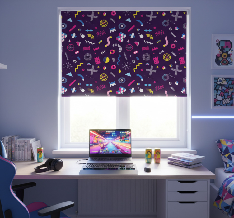 Genç odası stor perde memphis oyun deseni