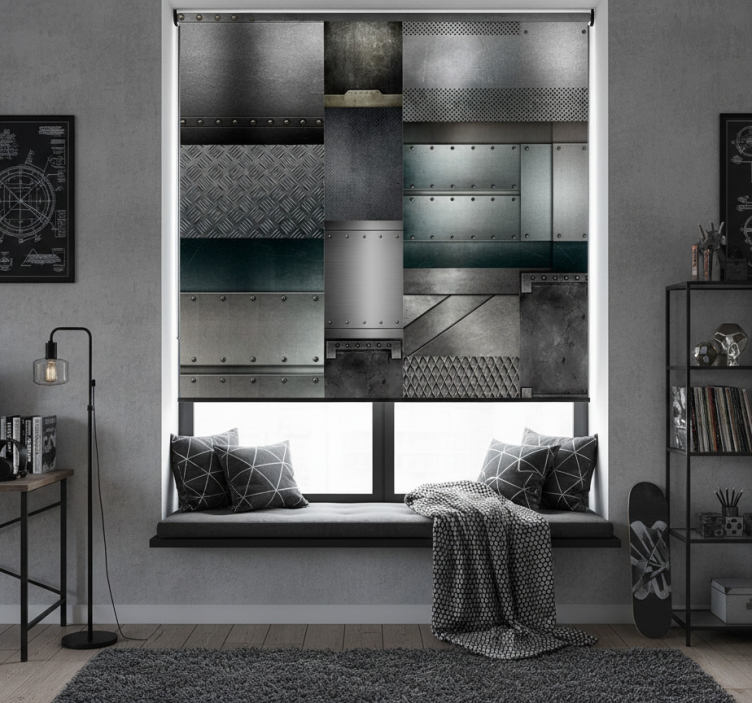 Genç odası stor perde - metal siyah blok deseni