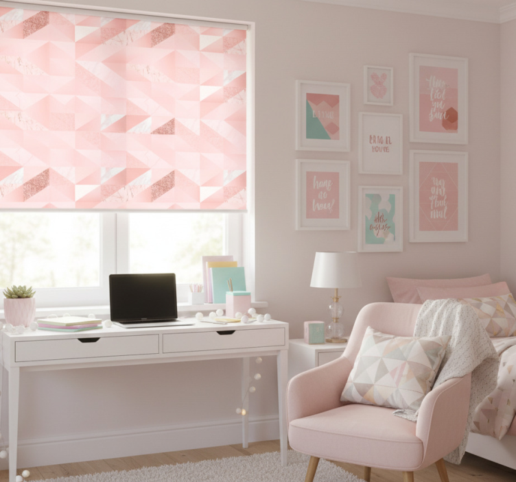 Genç odası stor perde - pembe geometrik desenli genç odası stor perde, 2 tıklamayla kolay montaj imkanı sunar. Hızlı ve pratik bir uygulama ile kısa sürede odanıza şıklık katabilirsiniz. Ürün, temizlemesi kolay yapısıyla da dikkat çekiyor; böylece her zaman yeni bir görünüm elde edebilirsiniz.